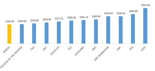 NUGSS Health & Dental Plan fees in comparison with other student associations in BC.